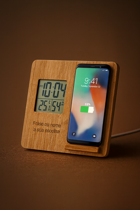 Estação Meteorológica em Bambu com Carregador Sem Fios 10W